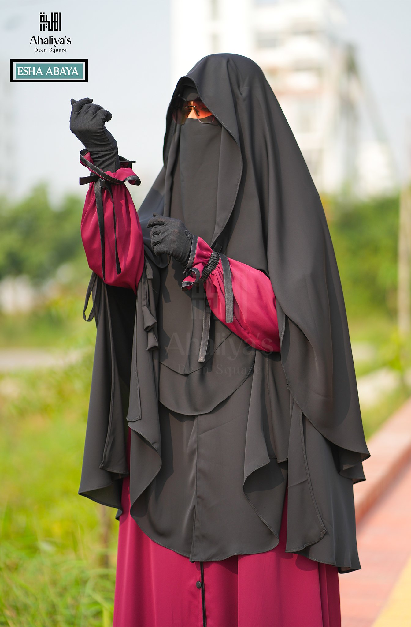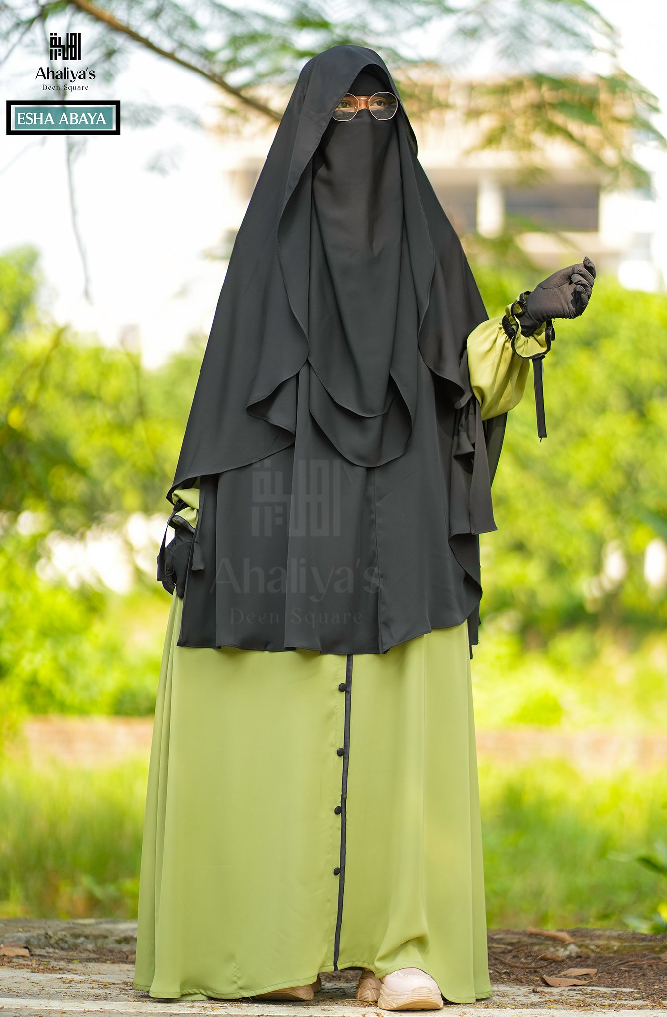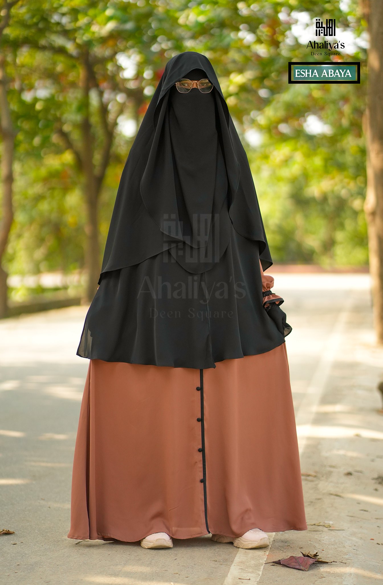 আবায়াটির সামনের অংশে শাটিং কাপড়ের সুন্দর পাইপিন ডিটেইলিং, সাথে শো বাটন ডিজাইন যা লুককে করে তুলেছে ইউনিক।