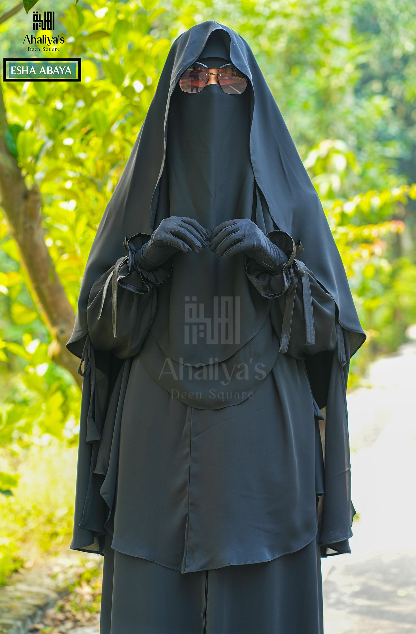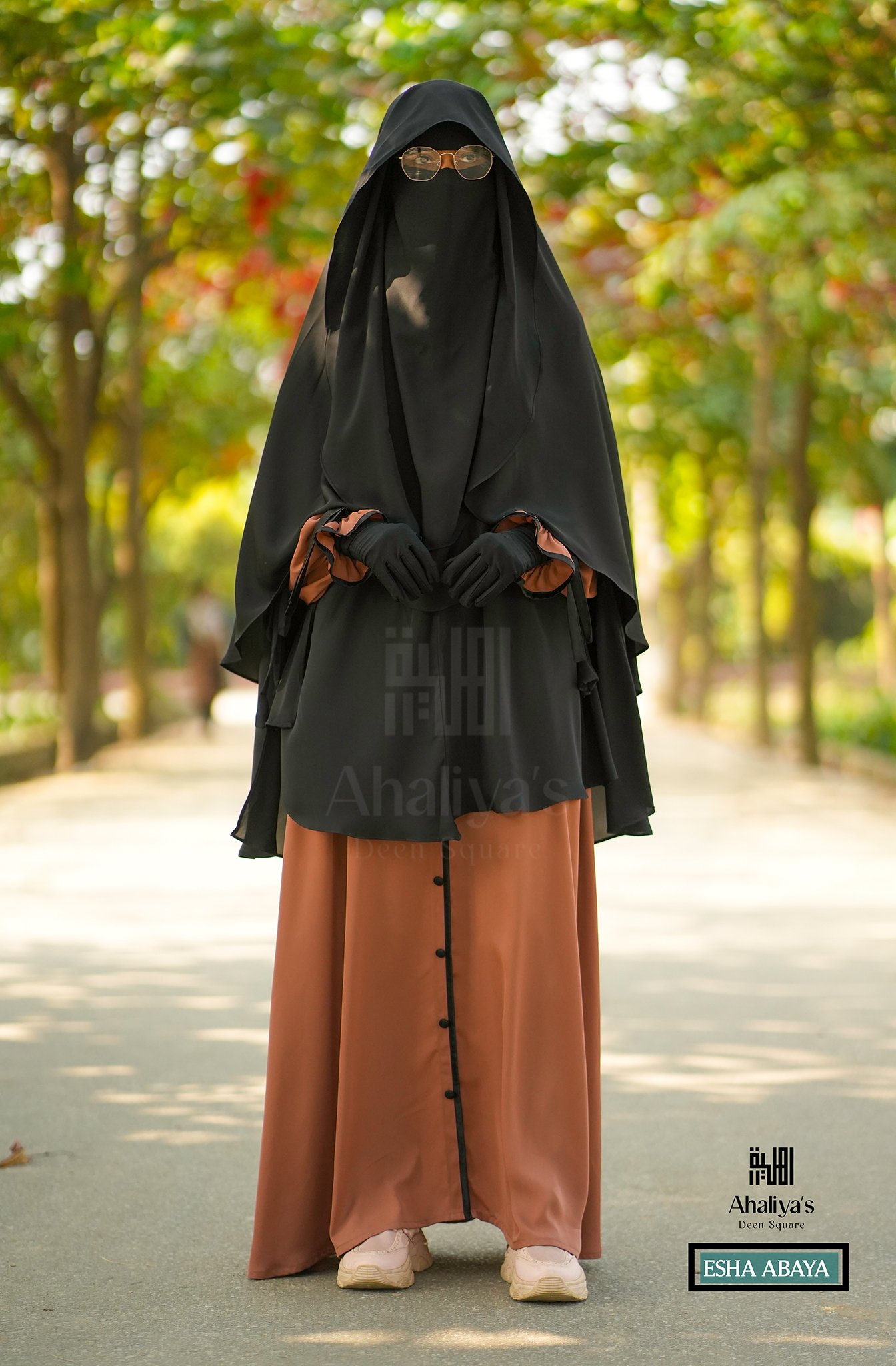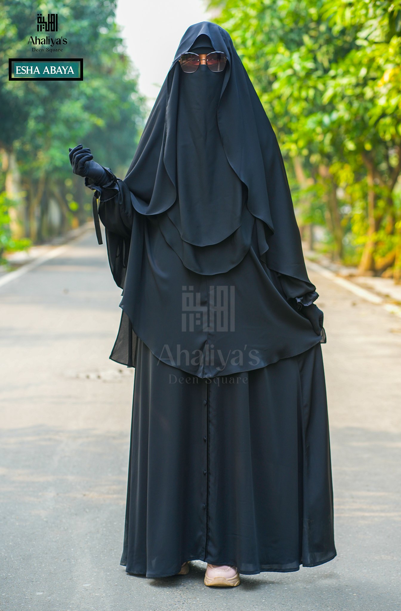 আবায়াটির সামনের অংশে শাটিং কাপড়ের সুন্দর পাইপিন ডিটেইলিং, সাথে শো বাটন ডিজাইন যা লুককে করে তুলেছে ইউনিক।
