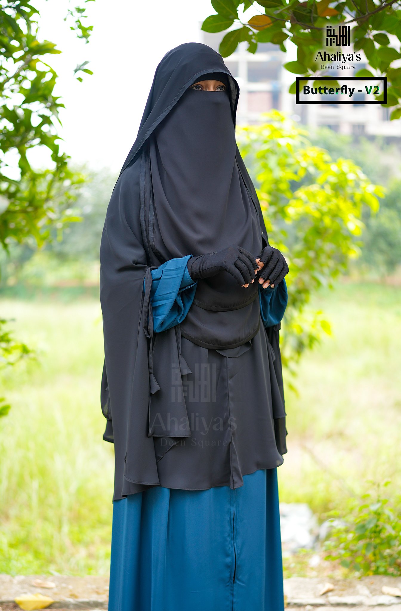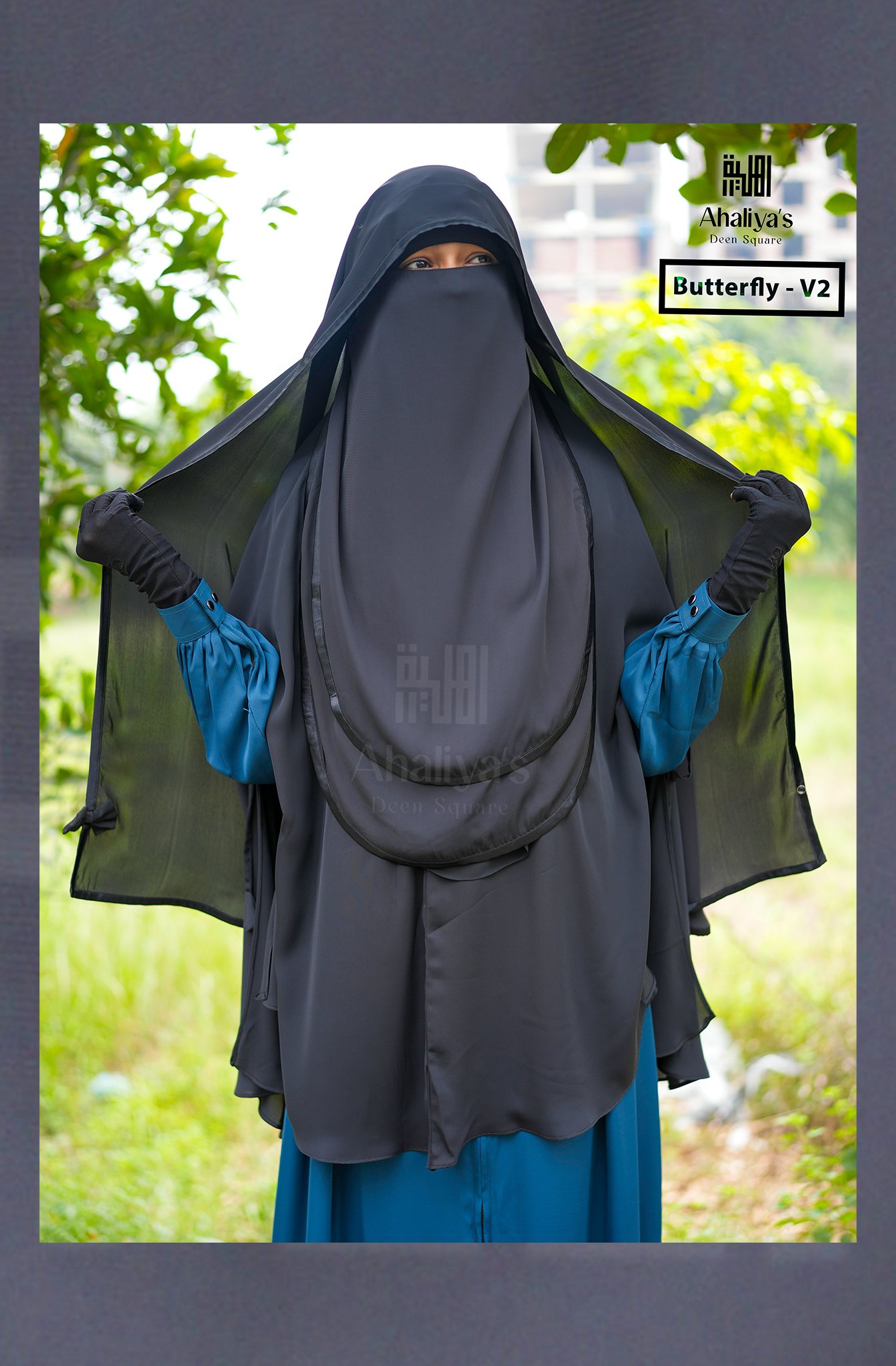 বাটারফ্লাই ভার্সন’টু যেকোনো কিছুর উপরেই পড়তে পারবেন,বোরকা/খিমার/জিলবাব/হেজাব। সামনে এনে টিপবোতাম দিয়ে হেজাবের মত পড়া যাবে।