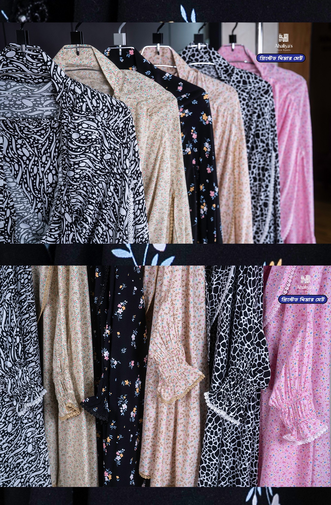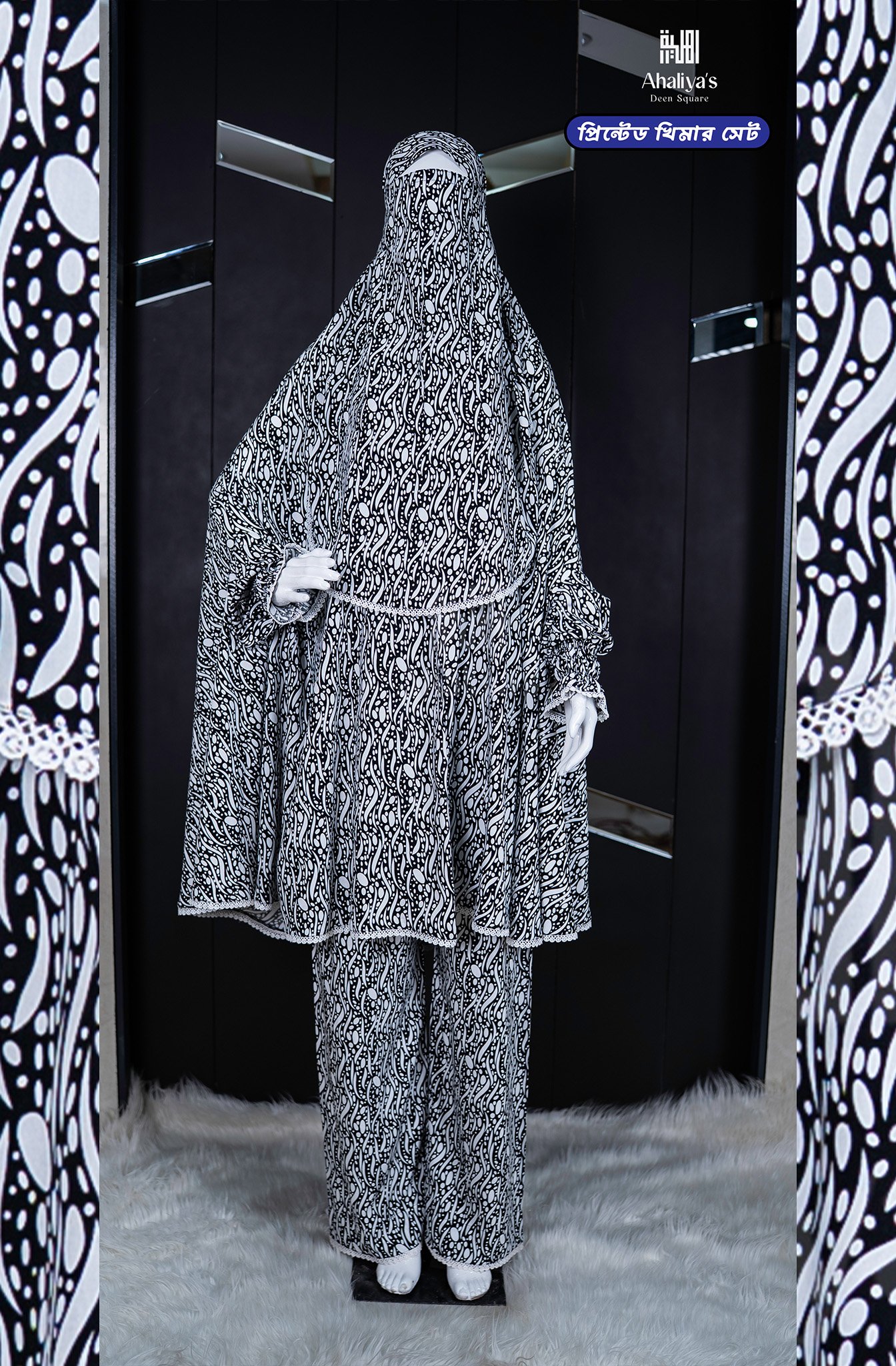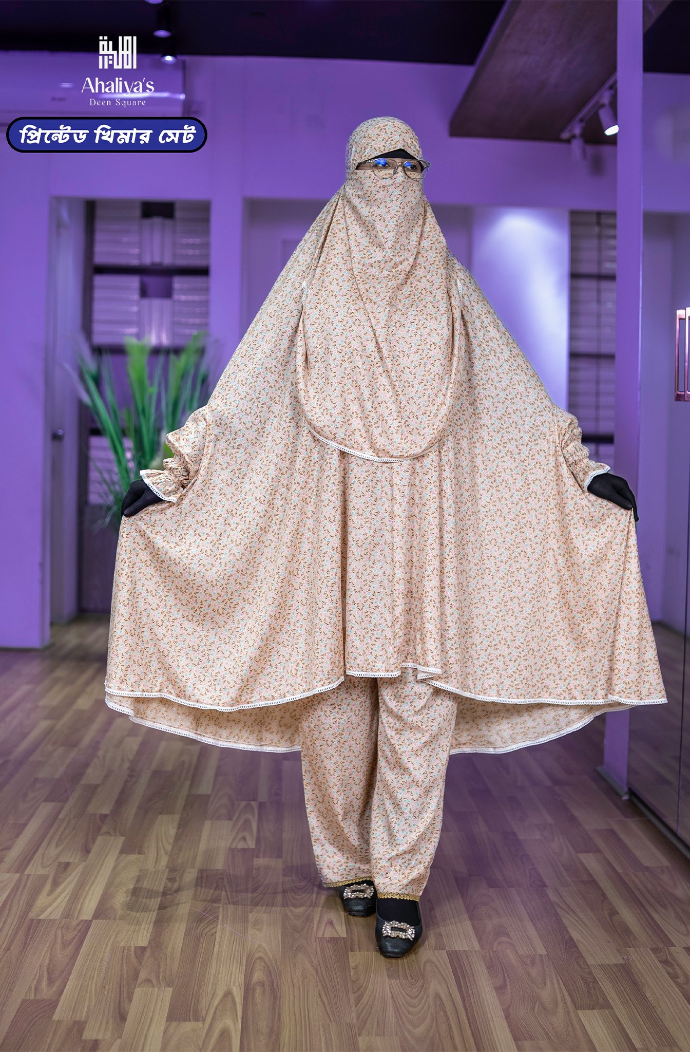 সেটটিতে রয়েছে এটাচ নিকাব সিস্টেমসহ একটি সুন্দরভাবে ডিজাইন করা স্লিভযুক্ত খিমার এবং আরামদায়ক প্লাজু। পরলে যেমন পরিপাটি লাগে, তেমনি চলাফেরাতেও পাওয়া যায় বাড়তি স্বস্তি।