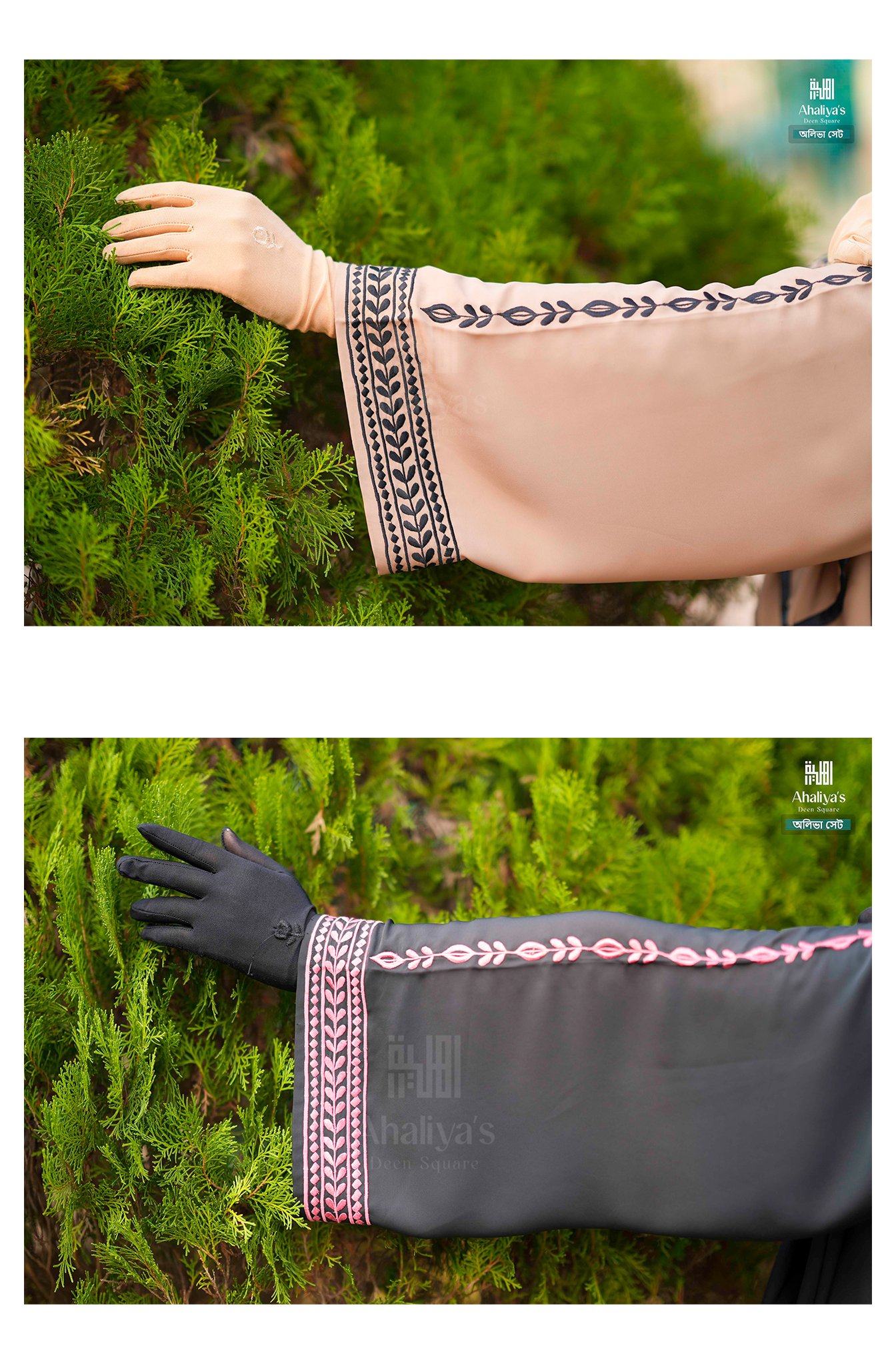 এই সেটটির সাথে আপনি যেকোনো রেডি হিজাব বা প্লেইন ওড়না ব্যবহার করতে পারবেন, যা আপনার লুককে পরিপূর্ণ করবে। আমাদের সকল সেটই ব্ল্যাক কালারে এভেইলএবল থাকে, এবং এই সেটটিতেও সেই সুযোগ তো পাবেনই সাথে বিশেষ কথা হলো, আপনি চাইলে ব্ল্যাক কালারের বোরকার সাথে ব্ল্যাক কালার এব্রোড্রি করিয়ে নিতে পারবেন—
