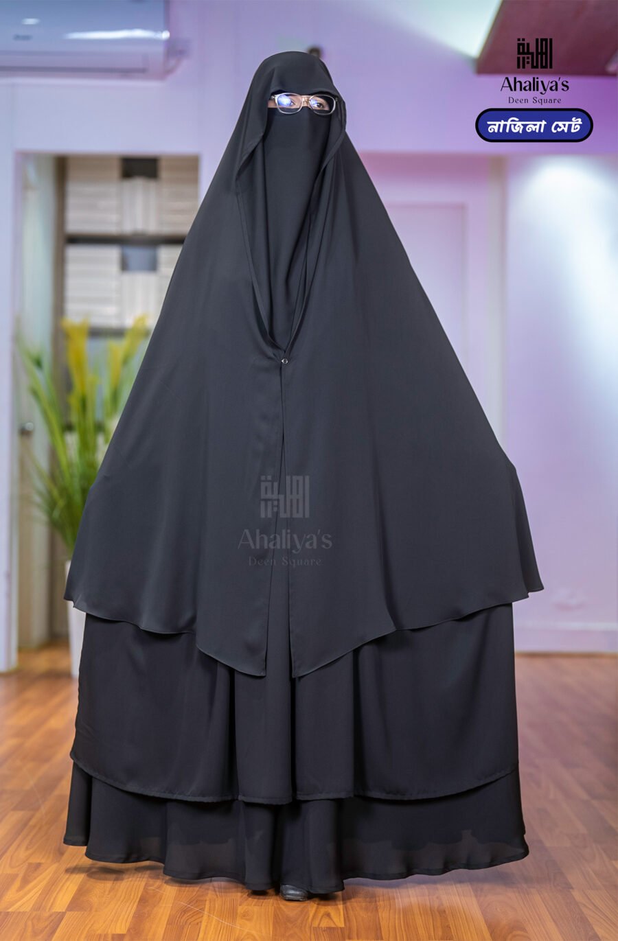 এর সঙ্গে থাকছে হুডি সিস্টেম করা একটি হিজাব, যার পেছনের অংশ বড় ও লম্বা, আর সামনে সাইডেও দেবে সম্পূর্ণ ফুল কভারেজ।
