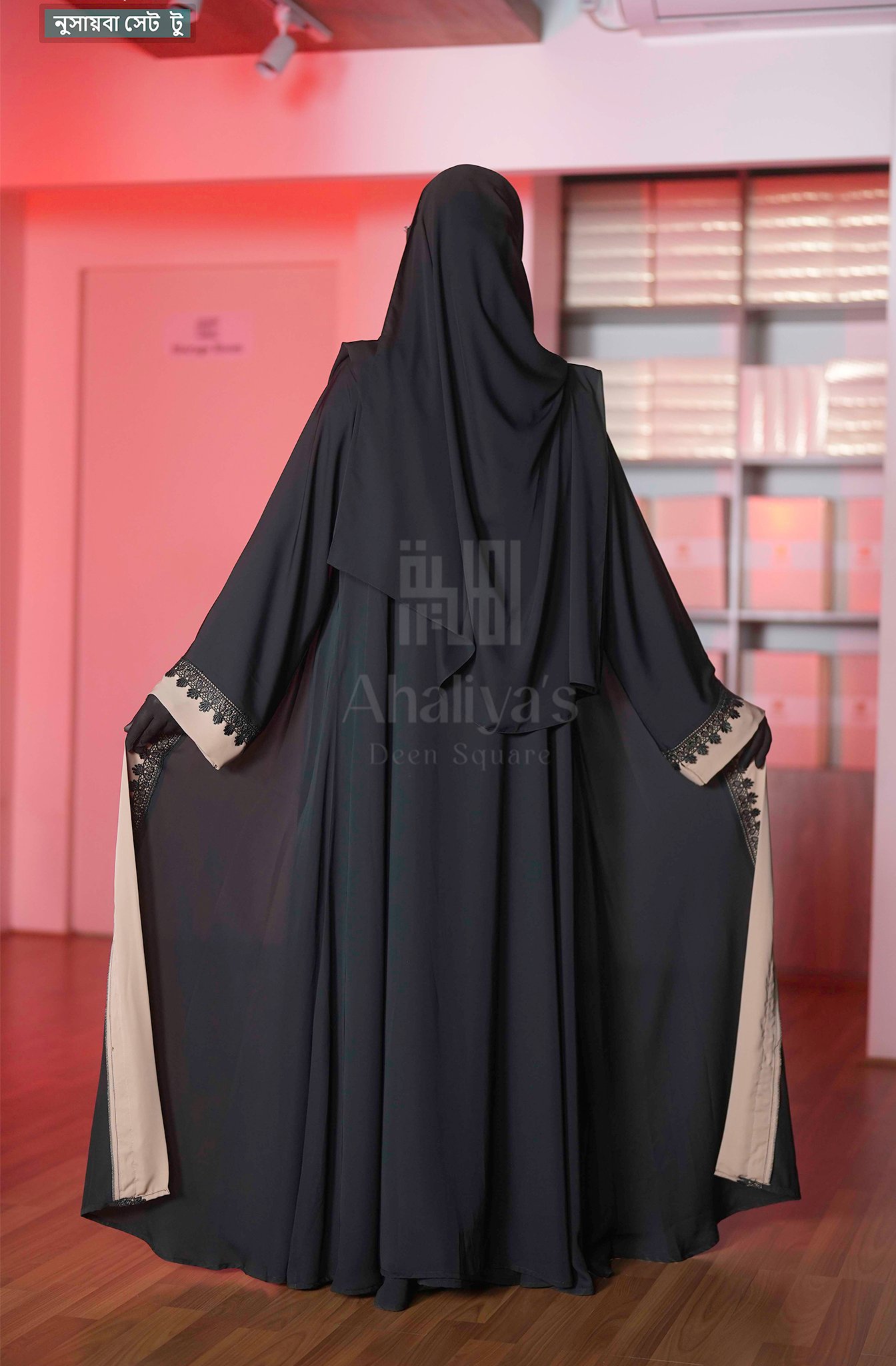 “নুসায়বা সেট ভার্সন টু ” স্লিভলেস ইনারের সাথে আলাদা কোটি যুক্ত থাকায় পুরো সেটের লুকটি হয়ে যায় একদম আলাদা ও চমৎকার । আমাদের নুসায়বা ভার্সন টু সেটটিতে রয়েছে সুন্দর লেইস ওয়ার্ক, যা তার সৌন্দর্যকে আরো বাড়িয়ে দিয়েছে ।