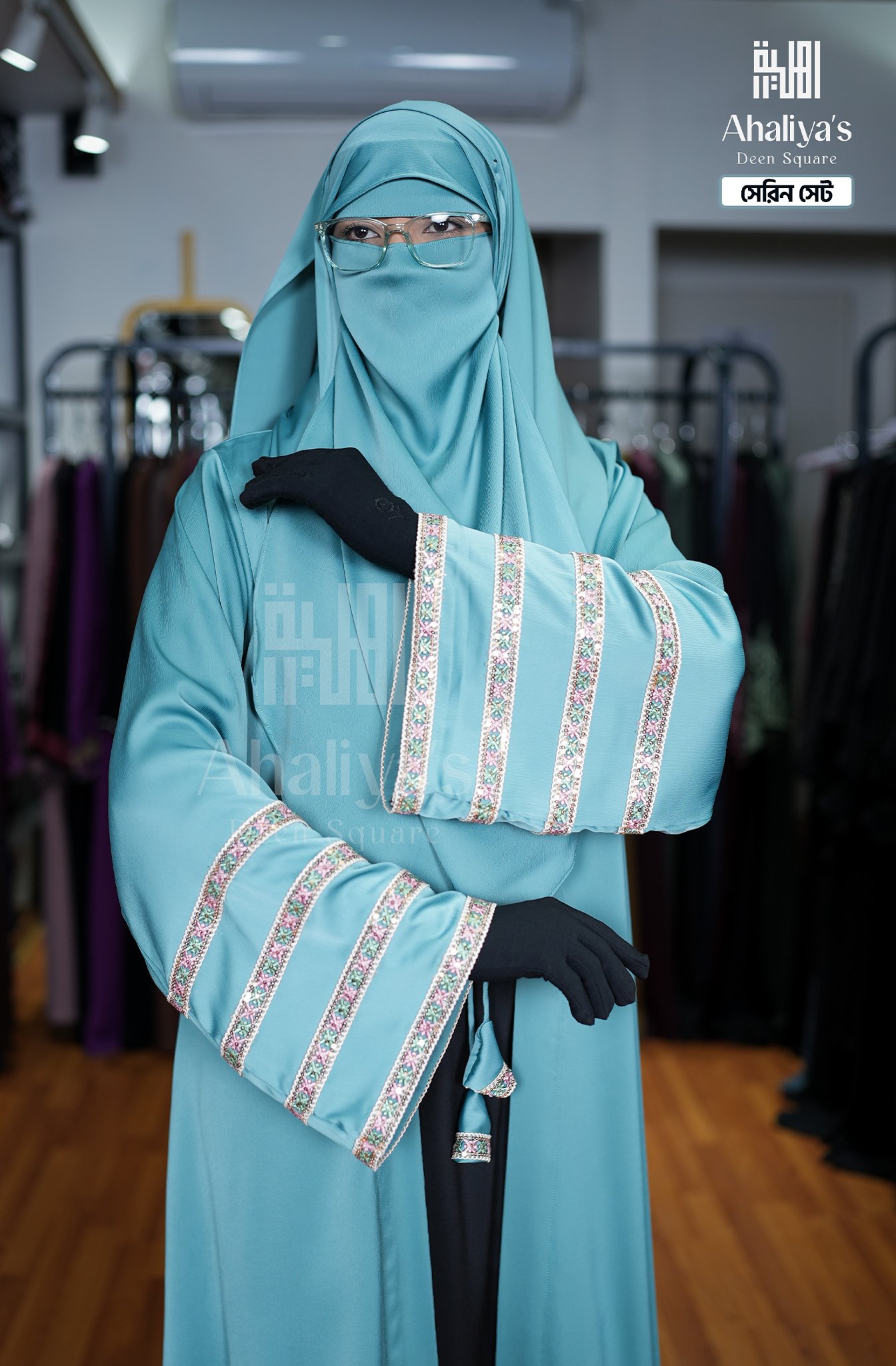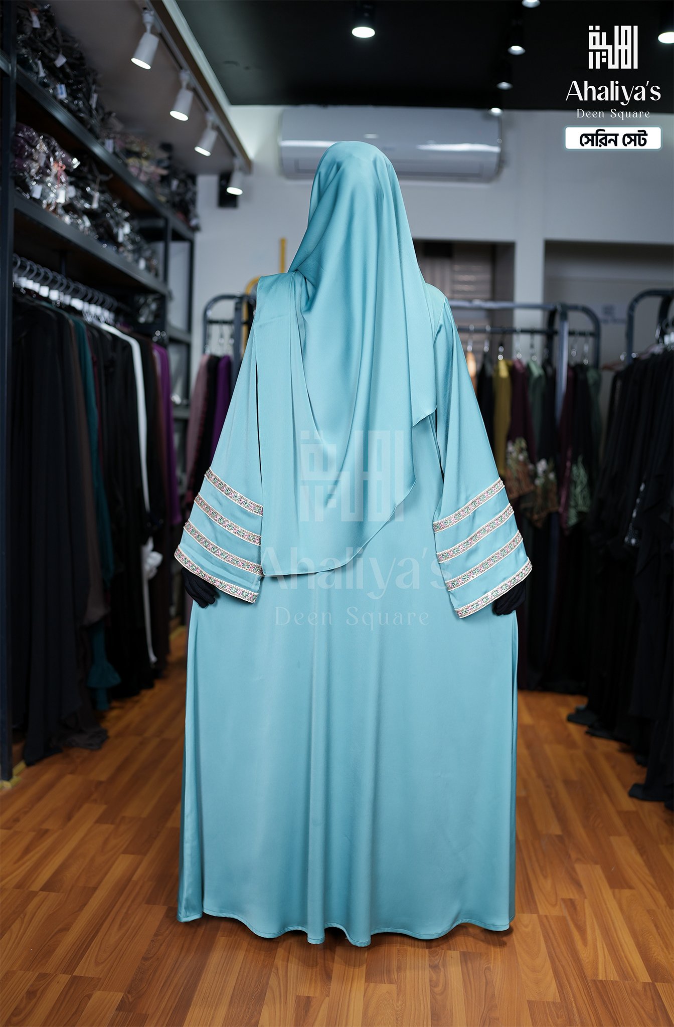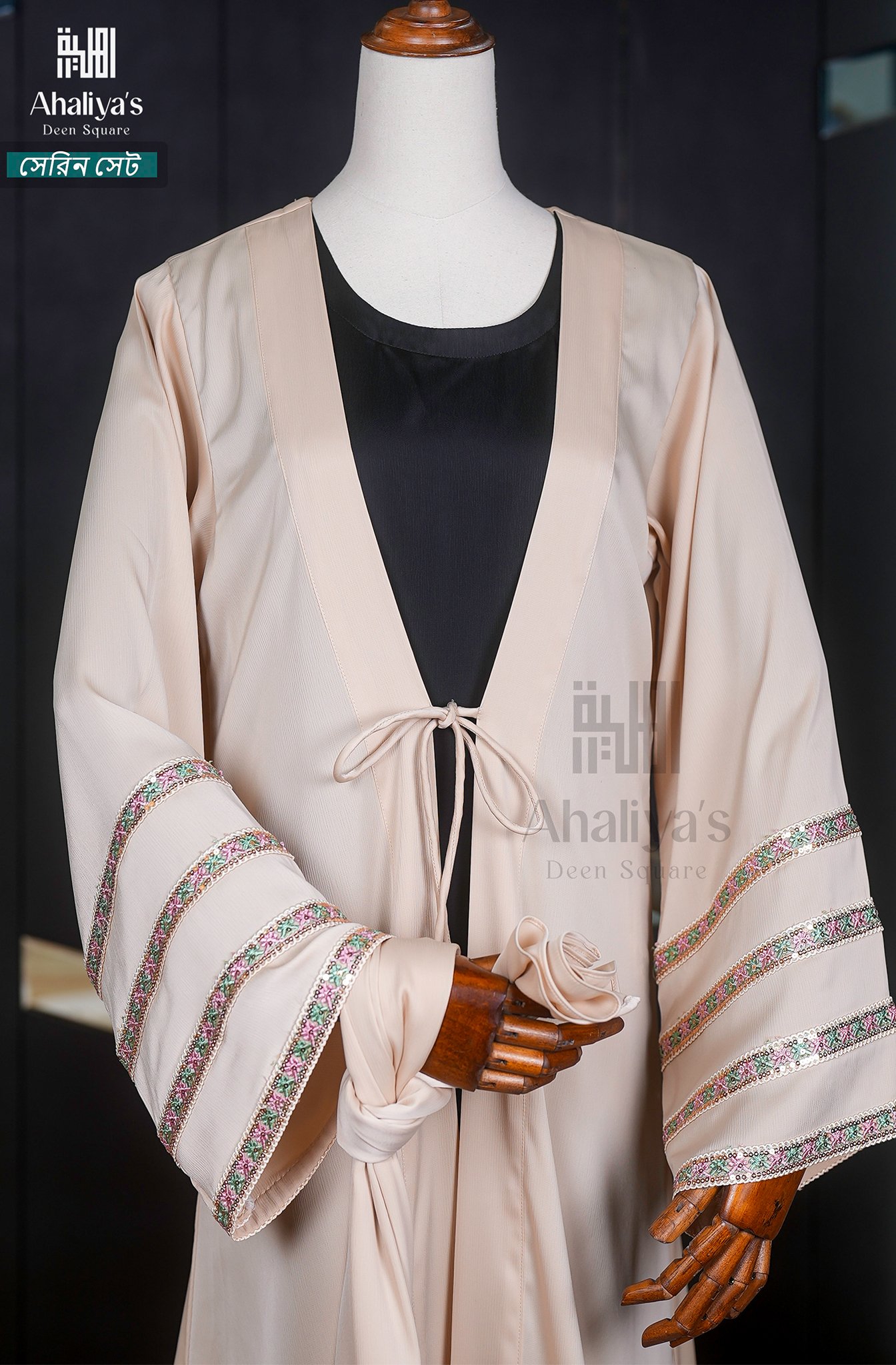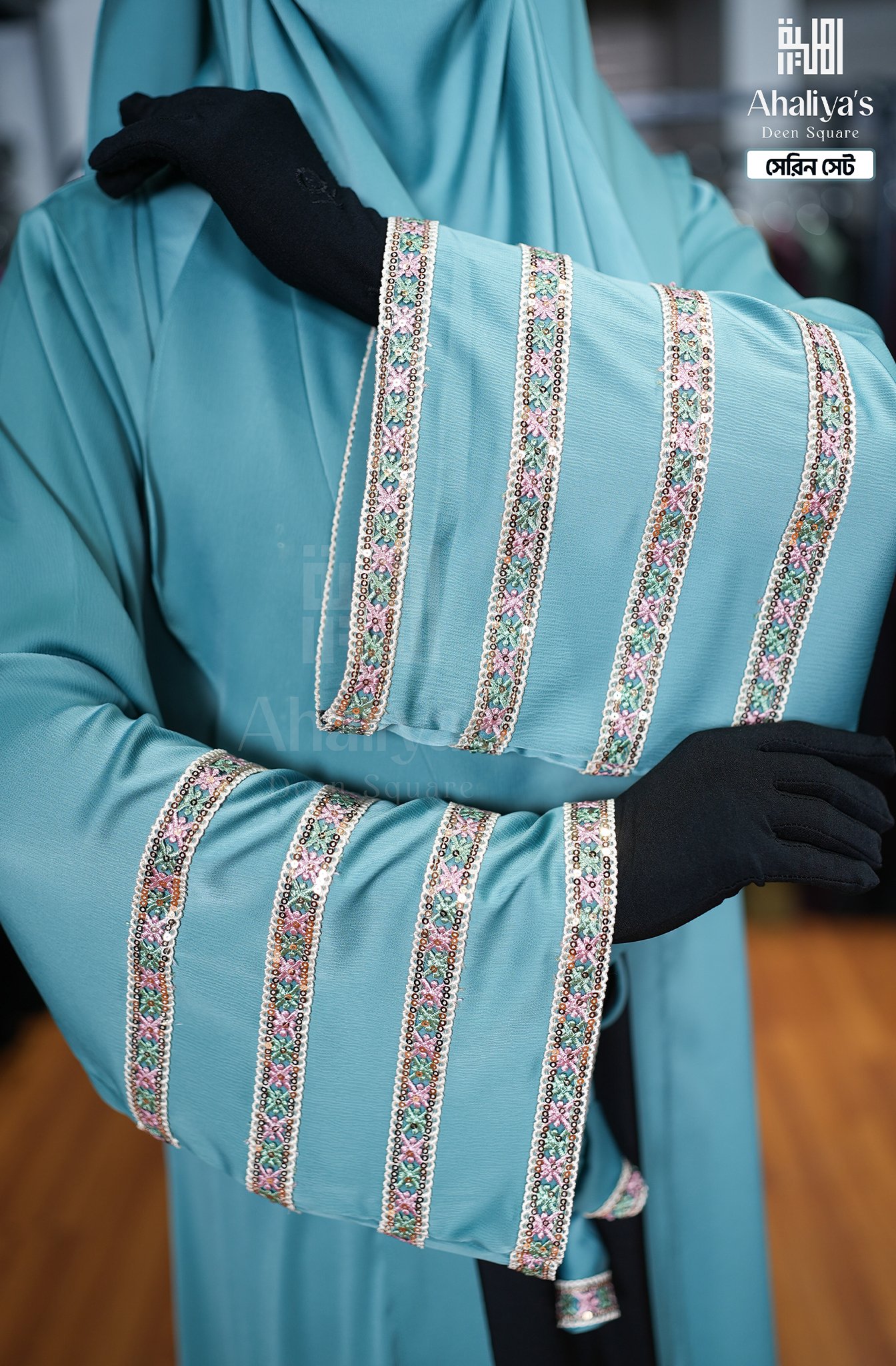 “সেরিন সেট” কটি সিস্টেম আবায়ার সংযোজন। এর এটাস কটির সাথে ফিতায় লাগানো টারসেলের ডিজাইন ও হাতায় থাকা প্রিমিয়াম কোয়ালিটির সিকুয়েন্স এবং মাল্টি কালার সুতোর লেইস ওয়ার্ক একে একটি সফিস্টিকেটেড লুক দিয়েছে।পেস্ট ও ব্লাক কালার কম্বিনেশনে এটি হয়ে উঠেছে কোমল। এছাড়াও এই সেটের সাথে রয়েছে প্লেন ওড়না এবং ওয়ান পার্ট নিকাব।